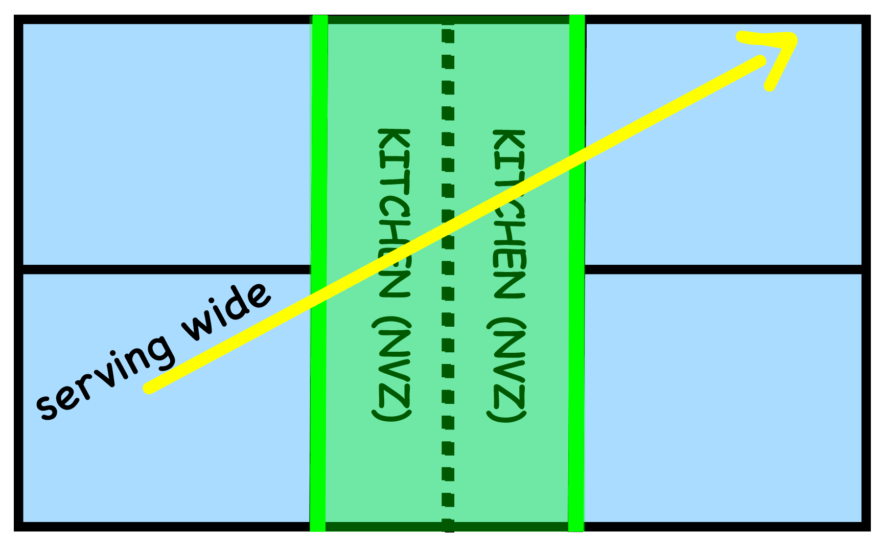 For the setup of this play, we’re going to use our serve. The main idea is trying to get our serve to cause our opponents to be late to the kitchen line.