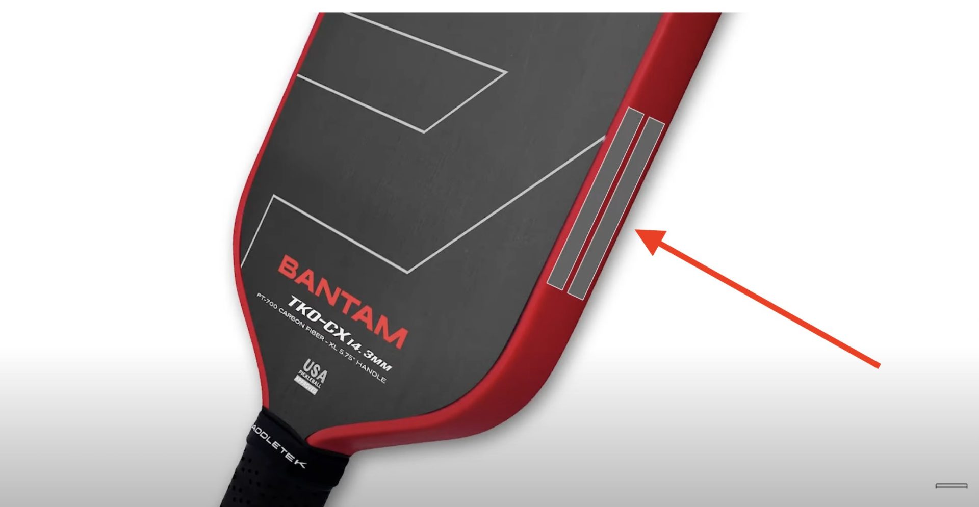 This is the Paddletek Bantam TKO CX, 12.7 mm version. I’m biased, but I think it’s the best paddle out there. If you want more control, there’s also a 14.3 mm version. The CX means the handle is extended—5.75 inches instead of the TKO C’s 5.25. I prefer the longer handle because I like to use both hands at times.
