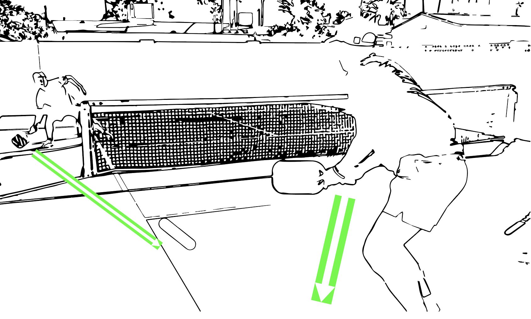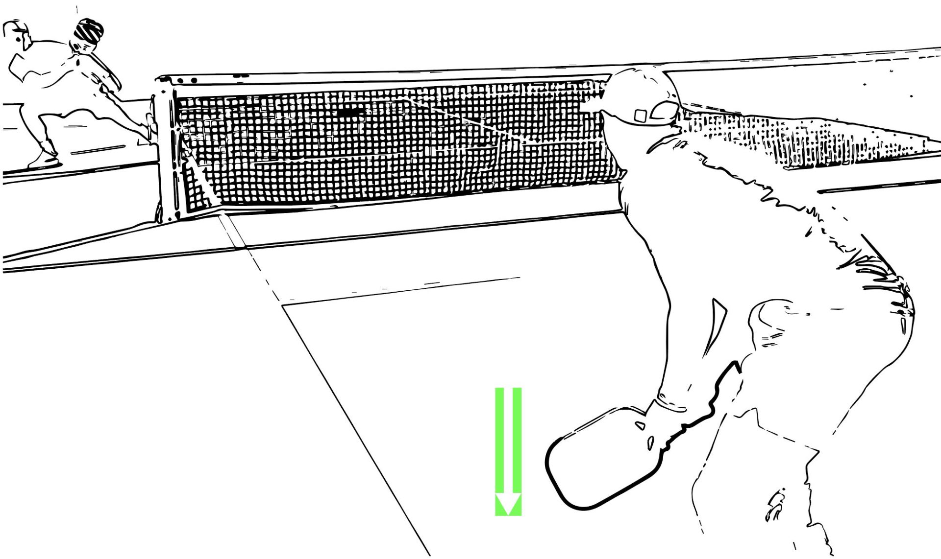 If the ATP shot is unexpectedly high and goes out, you can just duck and let it go. But most of the time, the ball will be low, and dropping your paddle early makes your movements more efficient.