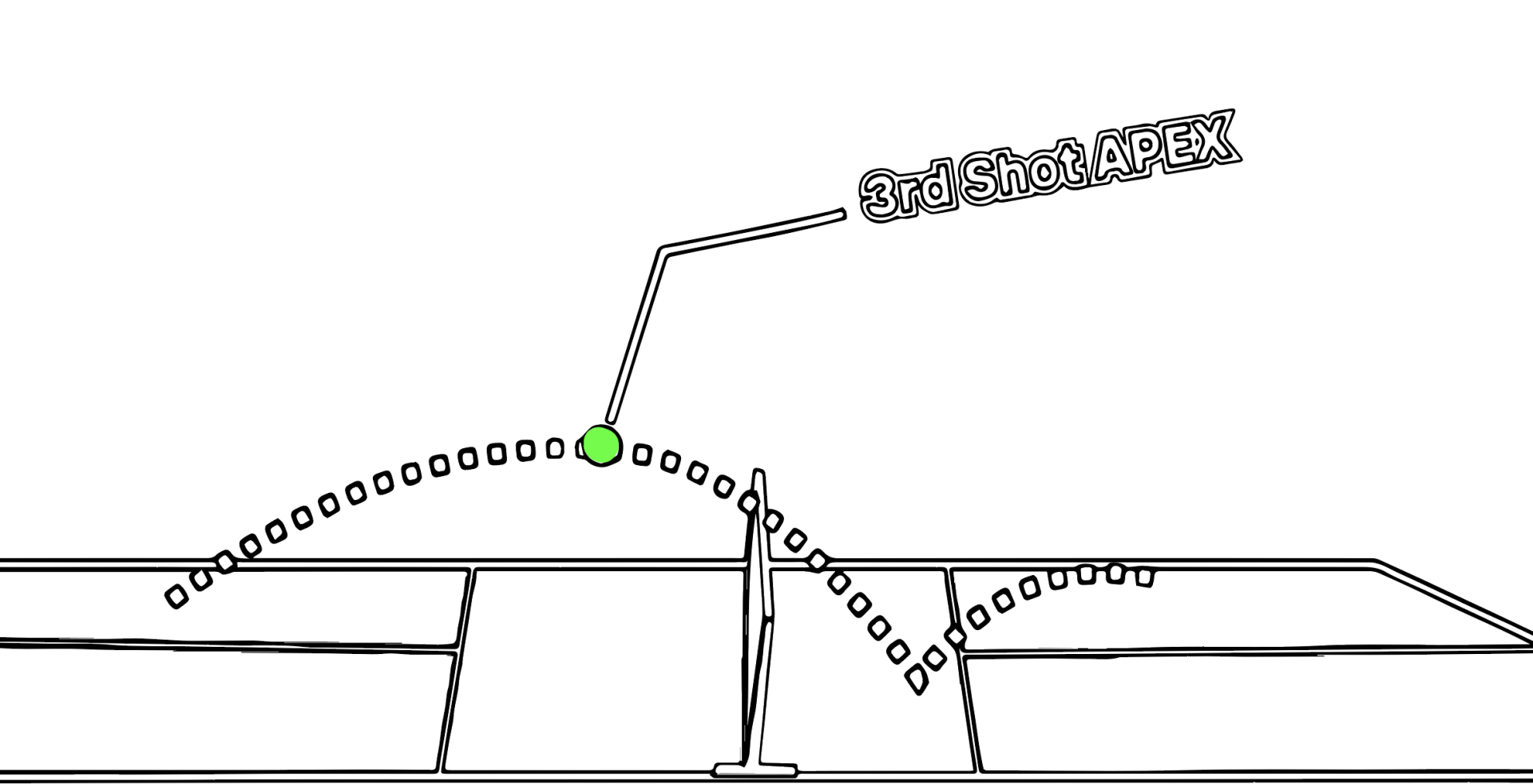 - The Apex (highest point of the ball’s flight) should be on your side of the kitchen (figure 4).