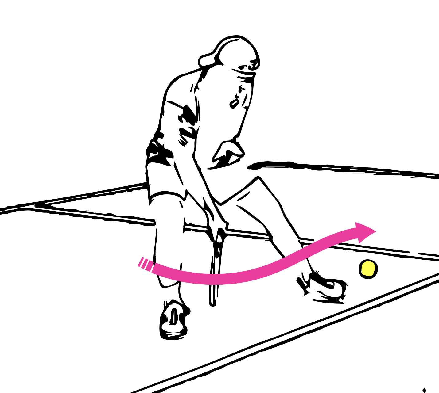 - The Tip Down Roll Dink (figure 2) – This is where the paddle drops and brushes up the back of the ball, creating a little bit of topspin.