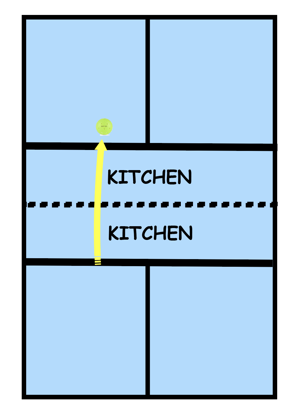 Hey guys, this is James Ignatowich, and I’m going to cover the importance of hugging the kitchen line when you’re playing doubles and taking dinks out of the air. If your opponent can make the dink bounce past the kitchen line, they can really control that area (Figure 1.) And when someone’s controlling the kitchen line, that’s how they generate pop-ups.