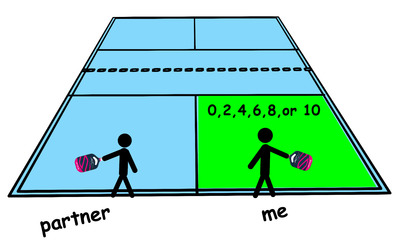 When our score is even (0, 2, 4, 6, 8, or 10), I’ll be on the right, and my partner will be on the left (Figure 1).