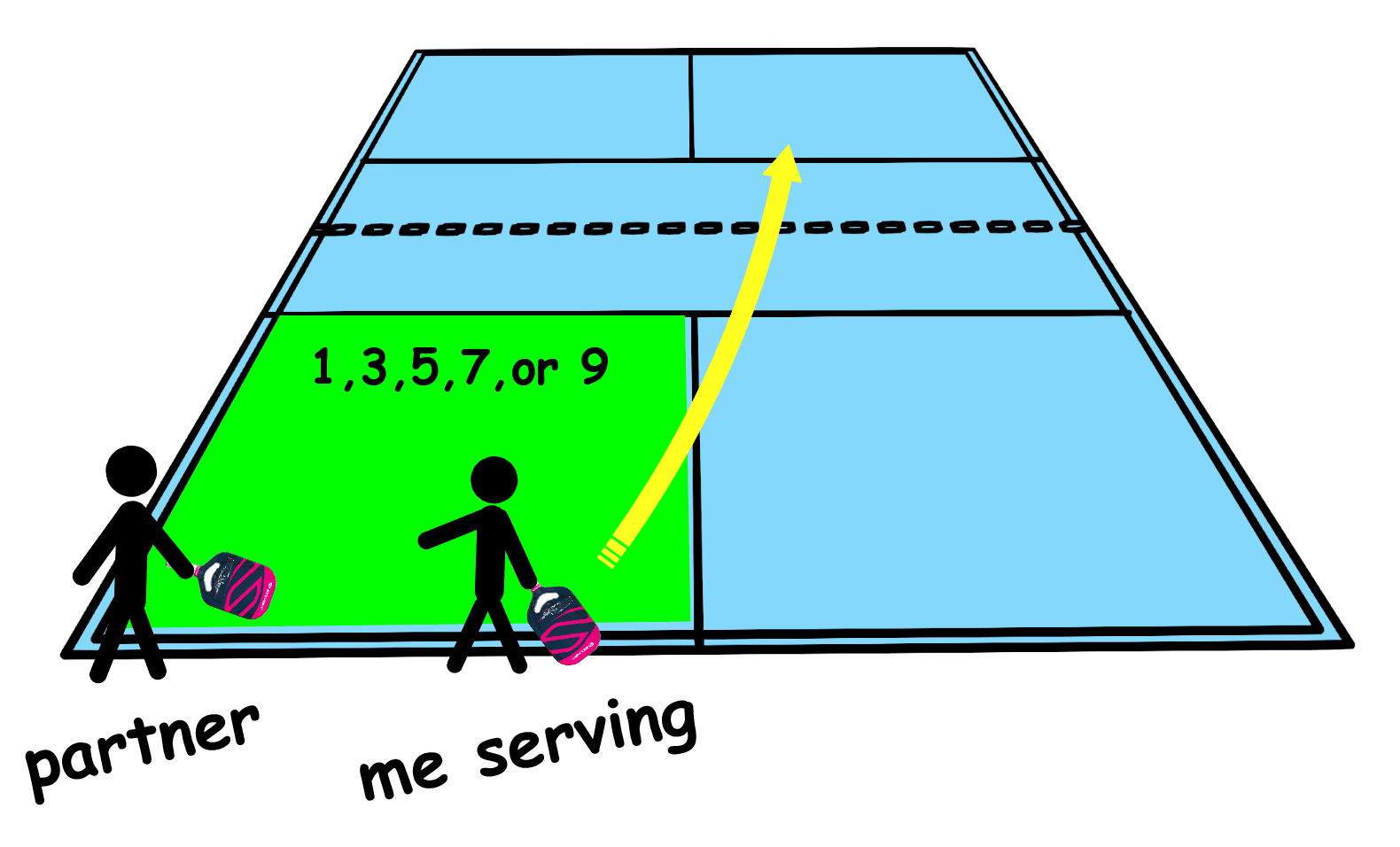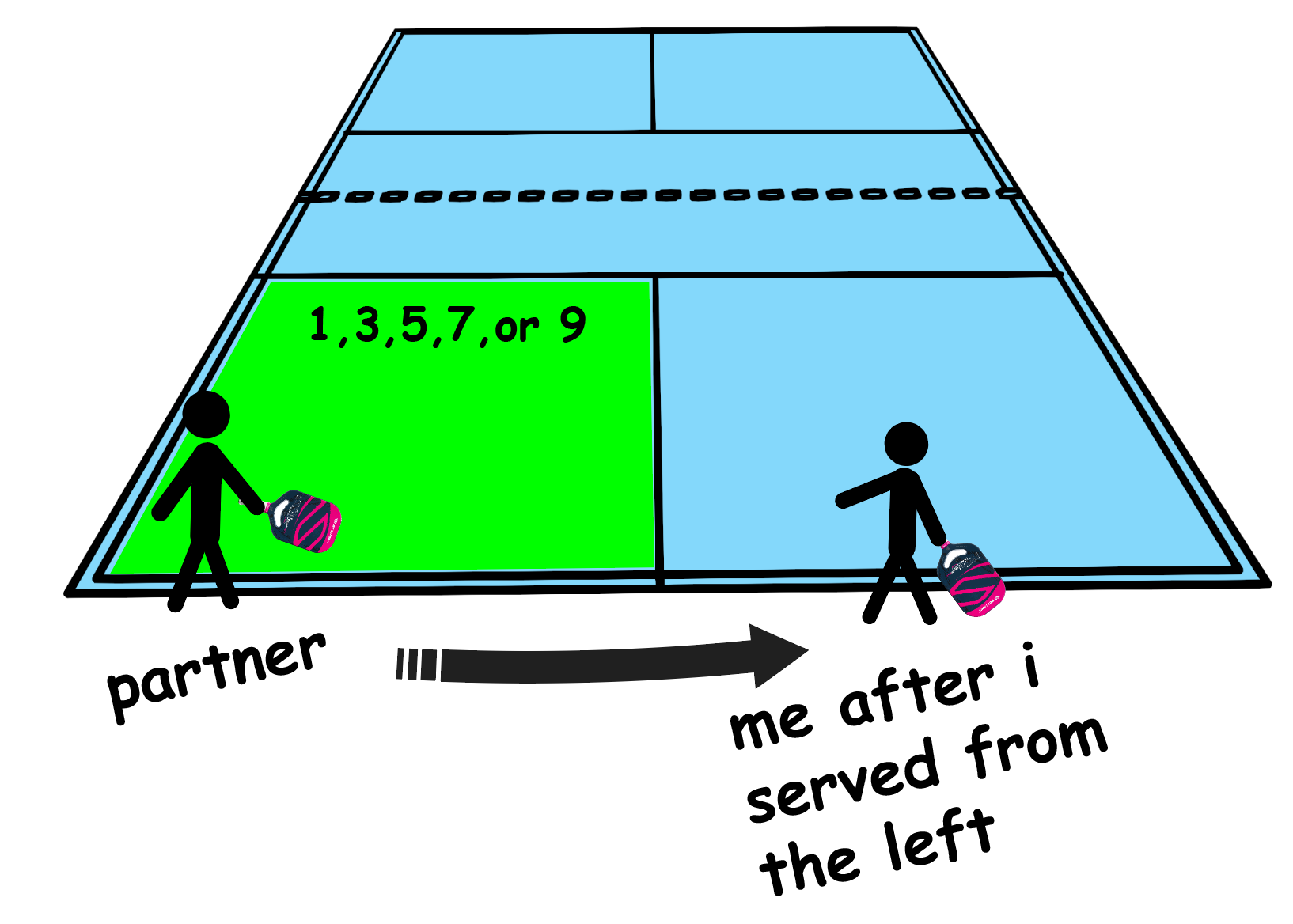 When the score is odd (1, 3, 5, 7, or 9), my partner will switch to the right side, and I’ll move to the left (Figure 2).