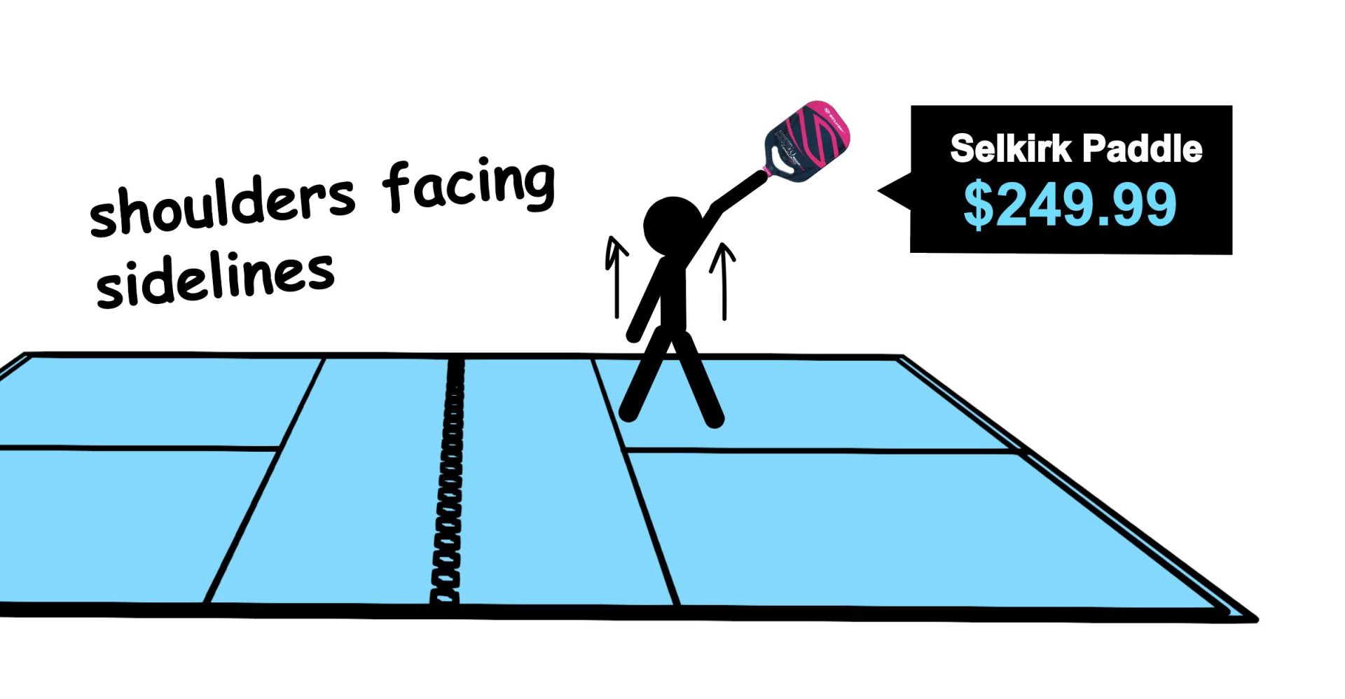 I’ve seen way too many people hit an overhead like that, and that is not how you generate power with the overhead. It is a lot easier to get more power and leverage if you are faced towards the sidelines, so that when you hit it, your shoulder turn brings your right arm forward. You’re able to get way more leverage like that, and you’ll hit it significantly harder.