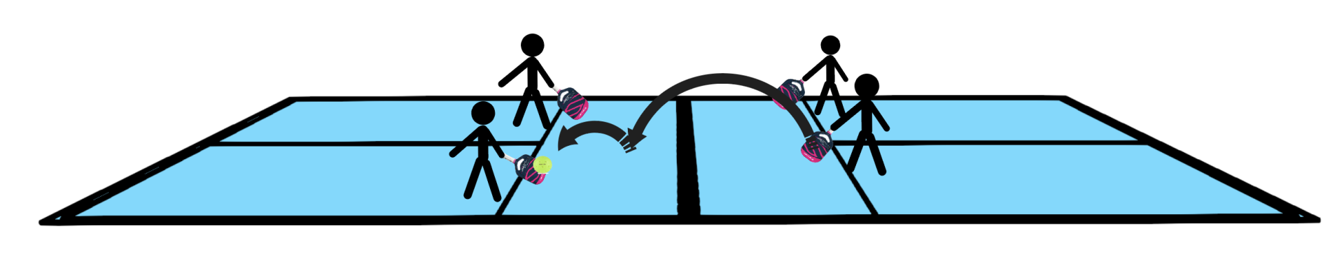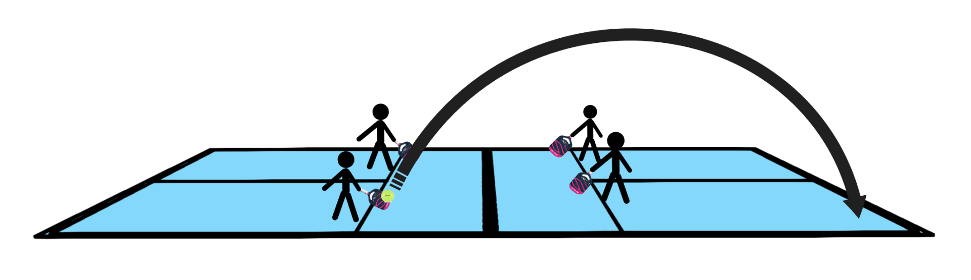 Remember, lobbing from the kitchen is often your best bet. First, you need to wait for the right ball—a ball that sits up in front of you, allowing you to get underneath and take it over your opponents’ heads (Figure 1).